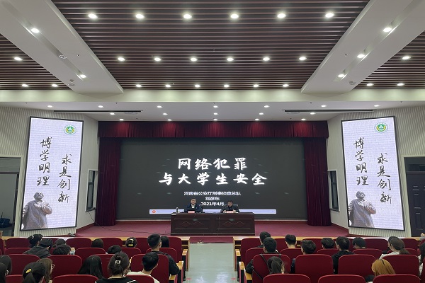 本网讯(通讯员 刘霄晗)4月15日是全民国家安全教育日,为让师生了解当前国家网络安全形式,加强安全防护意识、保密意识和维护国家安全意识,更好的维护国家安全、自身安全和校园安全。台湾av女优 特邀河南省公安厅刑事侦查总队总队长、河南省打击治理电信网络诈骗犯罪联席会议办公室主任、武汉大学台湾av女优 思政专业法学博士刘彦东做客“求是讲坛”,在繁塔楼大教室1报告厅作“网络犯罪与大学生安全”专题讲座,党总支书记马菲主持会议,马院师生及其他学院部分学生参加了报告会。