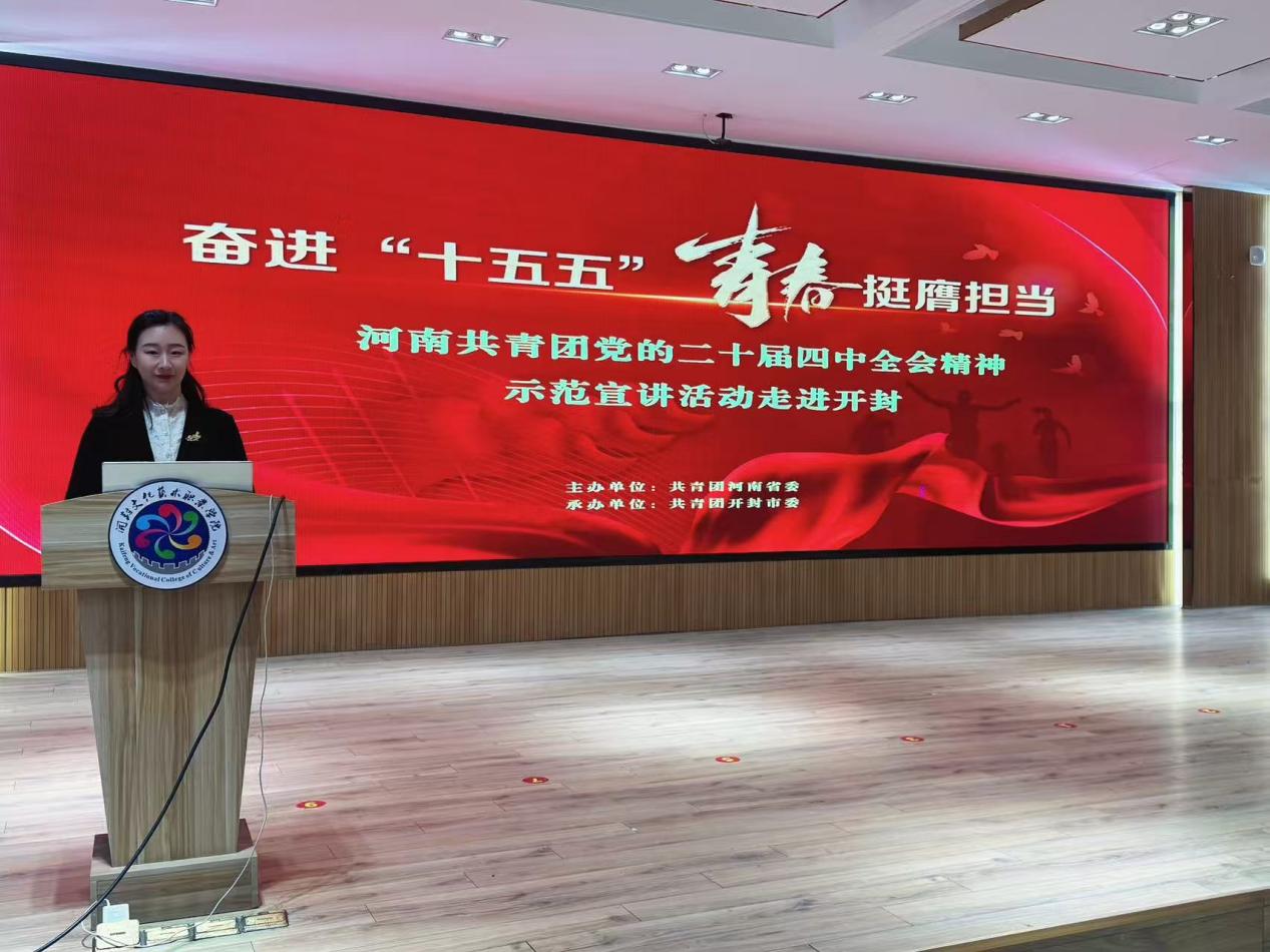 团总支书记王海晶受邀参与河南共青团党的二十届四中全会精神示范宣讲活动。首场宣讲在开封文化职业技术学院进行。