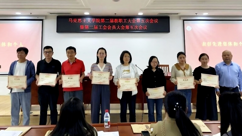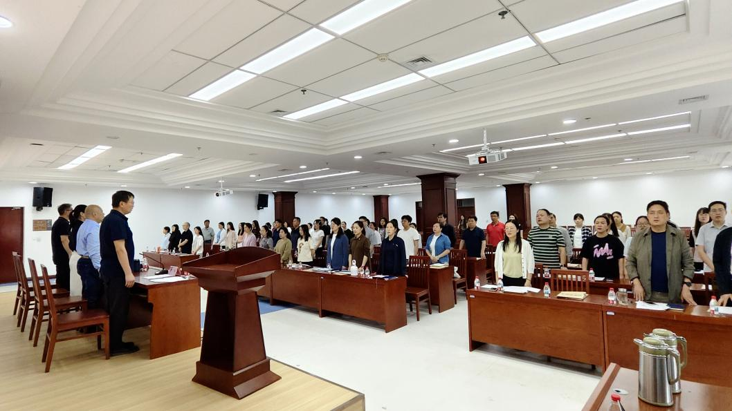 在图书馆302会议室召开第二届教职工大会暨工会会员大会第五次会议。会议由院党委副书记徐涤寒主持,班子成员、全体教职工参会。
