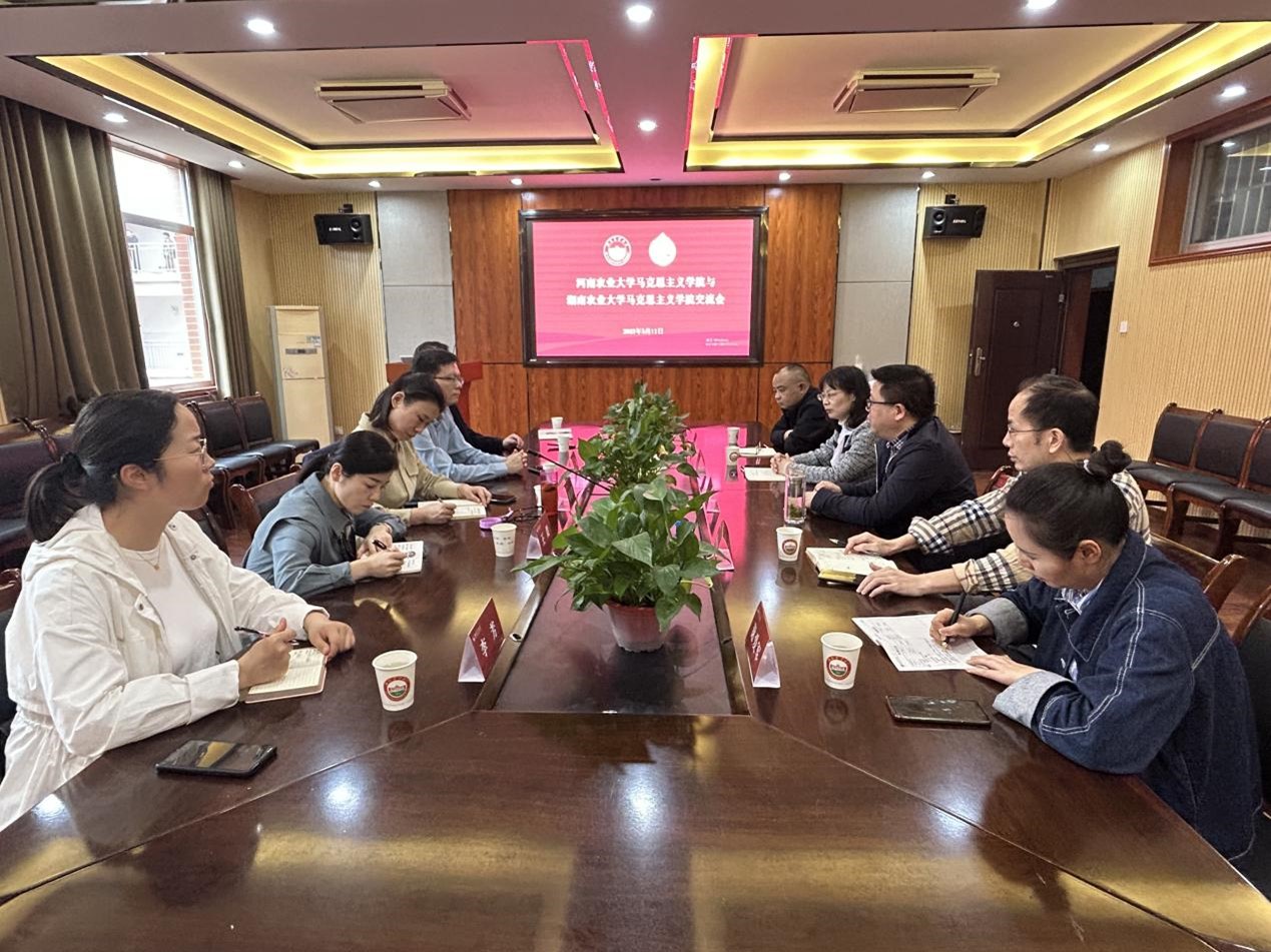 (通讯员:王海晶) 为进一步落实主题教育要求,充分调研学习各方经验,推动学院各项事业高质量发展,5月11日,台湾av女优 党委书记李强带队赴湖南农业大学台湾av女优 进行调研学习,党委副书记徐涤寒、副院长赵民学及教师代表随行参加。湖南农业大学台湾av女优 高度重视,在学院会议室举行交流座谈会,院长胡艺华主持会议,院党总支书记唐琳、副院长李苗和教师代表参会。