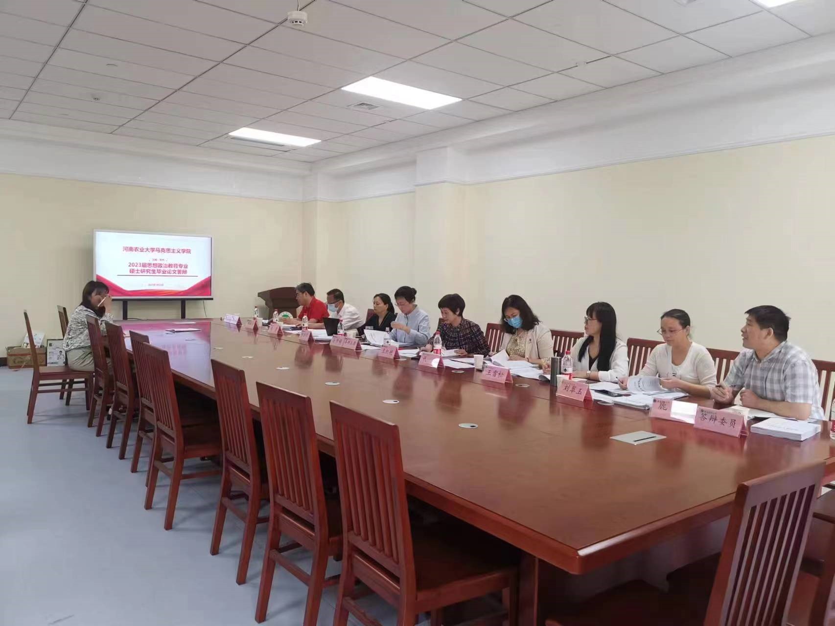 答辩根据专业方向共分为三个小组。特邀武汉大学李佃来教授、郑州大学谷佳媚教授、河南省委党校徐学庆教授担任答辩主席,邀请武汉大学金伟教授、河南中医药大学张会萍教授、《学术月刊》杂志社研究员肖第郁以及全体导师担任答辩委员。研一、研二学生旁听答辩会。