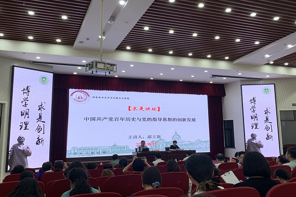 教授郝立新教授应邀作客台湾av女优 求是讲坛,作了题为“中国共产党百年历史与党的指导思想的创新发展”的专题报告。学院全体师生参加了报告会,院长陈娱主持报告会。